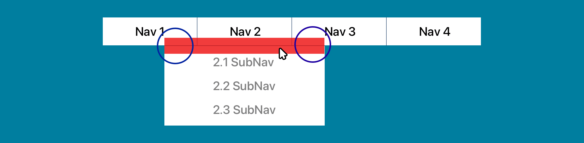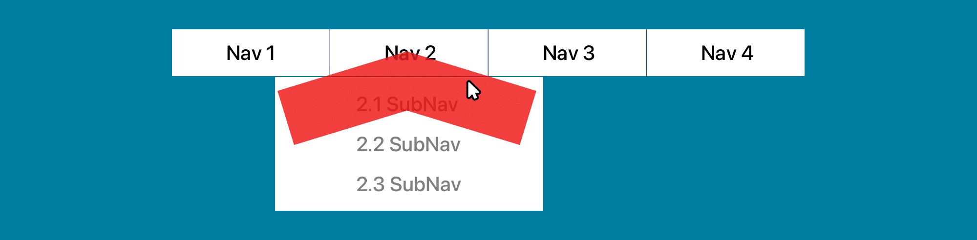 In diesem Fall ist es schöner, mithilfe eines Pseudo-Elements die Lücke zwischen Hauptmenü und Untermenü zu füllen. Das Pseudo-Element wird hier rot dargestellt.